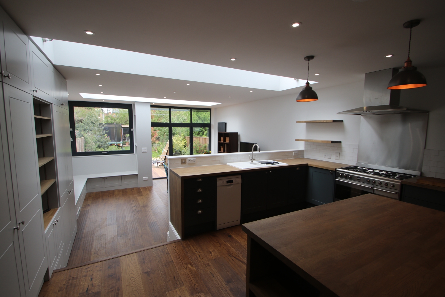 The rear of property was opened up to create an large open plan kitchen / dining / seating area over two levels.
